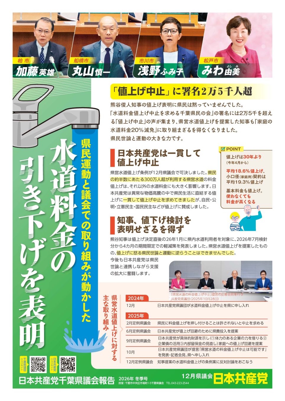 議会報告report 県議会報告 2026年冬季号 投稿: 2026年2月16日 共有: Facebook で共有するにはクリックしてください (新しいウィンドウで開きます) Facebook クリックして X で共有 (新しいウィンドウで開きます) X 2025年11月の県議会だより 投稿: 2025年11月19日 【11月16日号】2026年度の予算編成 … Continue reading 2025年11月の県議会だより 共有: Facebook で共有するにはクリックしてください (新しいウィンドウで開きます) Facebook クリックして X で共有 (新しいウィンドウで開きます) X 県議会報告 2025年秋季号 投稿: 2025年10月30日 共有: Facebook で共有するにはクリックしてください (新しいウィンドウで開きます) Facebook クリックして X で共有 (新しいウィンドウで開きます) X 2025年9月の県議会だより 投稿: 2025年9月22日 【9月28日号】県議会代表質問 新県総合 … Continue reading 2025年9月の県議会だより 共有: Facebook で共有するにはクリックしてください (新しいウィンドウで開きます) Facebook クリックして X で共有 (新しいウィンドウで開きます) X 県議会報告 2025年夏季号 投稿: 2025年7月28日 共有: Facebook で共有するにはクリックしてください (新しいウィンドウで開きます) Facebook クリックして X で共有 (新しいウィンドウで開きます) X 2025年7月の県議会だより 投稿: 2025年7月1日 【7月1日号】熱中症対策の申し入れを行い … Continue reading 2025年7月の県議会だより 共有: Facebook で共有するにはクリックしてください (新しいウィンドウで開きます) Facebook クリックして X で共有 (新しいウィンドウで開きます) X