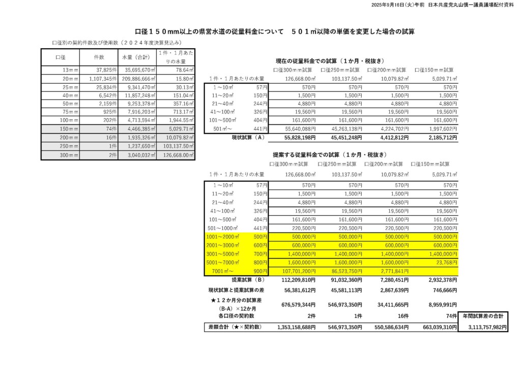 この3つで71億円になり、残り7億円は一般会計からの繰り入れを増額してまかなえば、小口径の契約者への値上げを避けることが可能になります。これはあくまでも1例ですが、やればできます。ぜひ、県としても検討していただきたいと考えますが、お答えください。