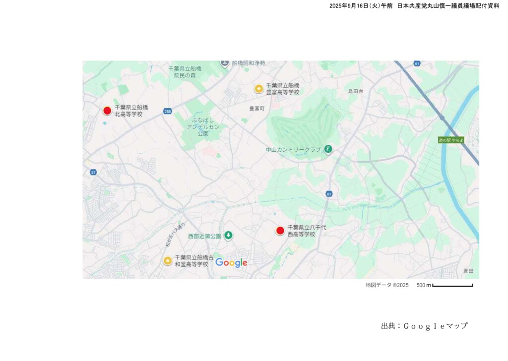 千葉県教育委員会が今年5月、「県立高校改革推進プラン」の第2次実施プログラム案を公表し、「船橋豊富高校と船橋北高校」「八千代東高校と八千代西高校」「沼南高柳高校と沼南高校」の3組6校の統合案を示しました。いまの1年生は6校合わせて28学級ありますが、統合が実施されれば12学級に激減します。また来年度の募集定員も減らされ、八千代西、船橋豊富、沼南の新1年生は、2クラス80人でスタートします。さらに、隣接する船橋市北部地域と八千代市西部地域では、3つの県立高校のうち1校しか残りません。「統合されたら自転車で通えなくなる」などの声も出ており、地域に与える影響は大きなものとなります。しかも、県教育委員会では学校の「適正規模」として都市部では1学年6~8学級としており、それを下回る学校を統廃合の対象としています。今回の実施計画では都市部の八千代東高校は現1年生が7学級で、県教委の言う「適正規模」なのに、統廃合の対象になっています。その理由をお聞かせください。